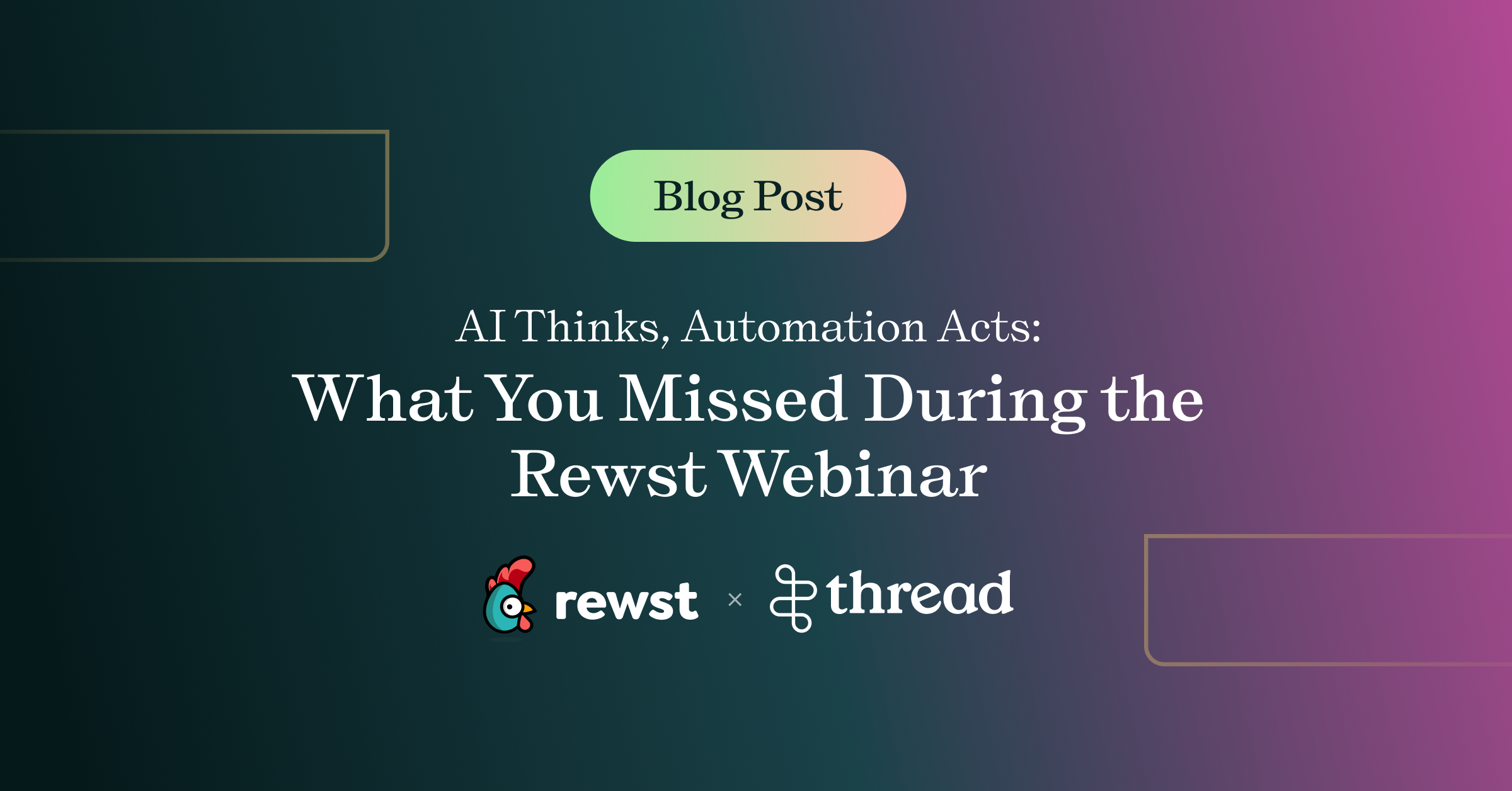 That was the core focus of Thread’s recent webinar with Rewst, titled “AI Thinks, Automation Acts: Bringing Them Together to Refine MSP Efficiency.” The conversation brought together leaders from both platforms alongside real-world MSP perspective from DelCor Technology Solutions, cutting through the hype to explain what’s working, what isn’t, and where MSPs should actually start.